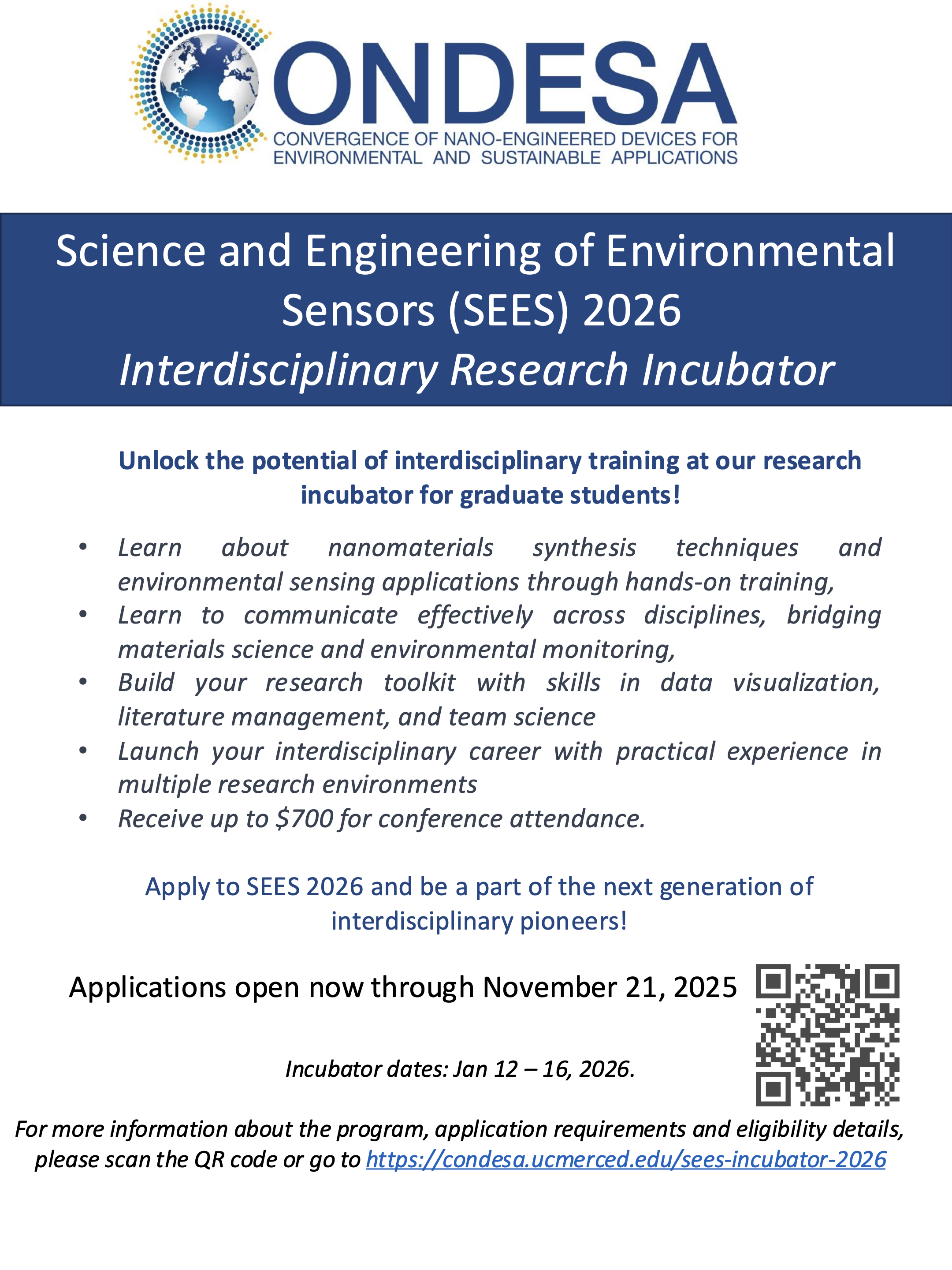 Immerse yourself in the 5-day interdisciplinary SEES incubator combining nanoengineering and environmental applications while building essential research skills for your future career.